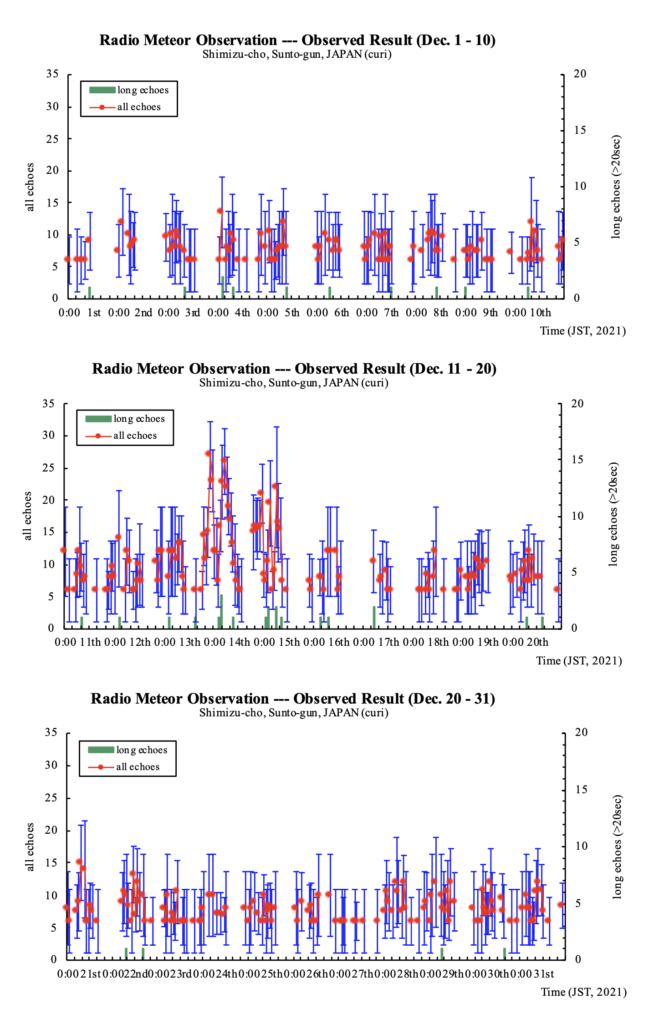 ふたご座流星群はロングエコーこそ多くは見られませんでしたが、それなりの結果は得られましたが、こぐま座流星群は通常との変化は見られない様に感じました。