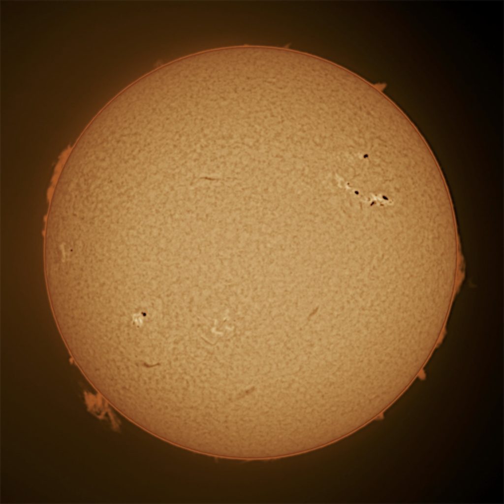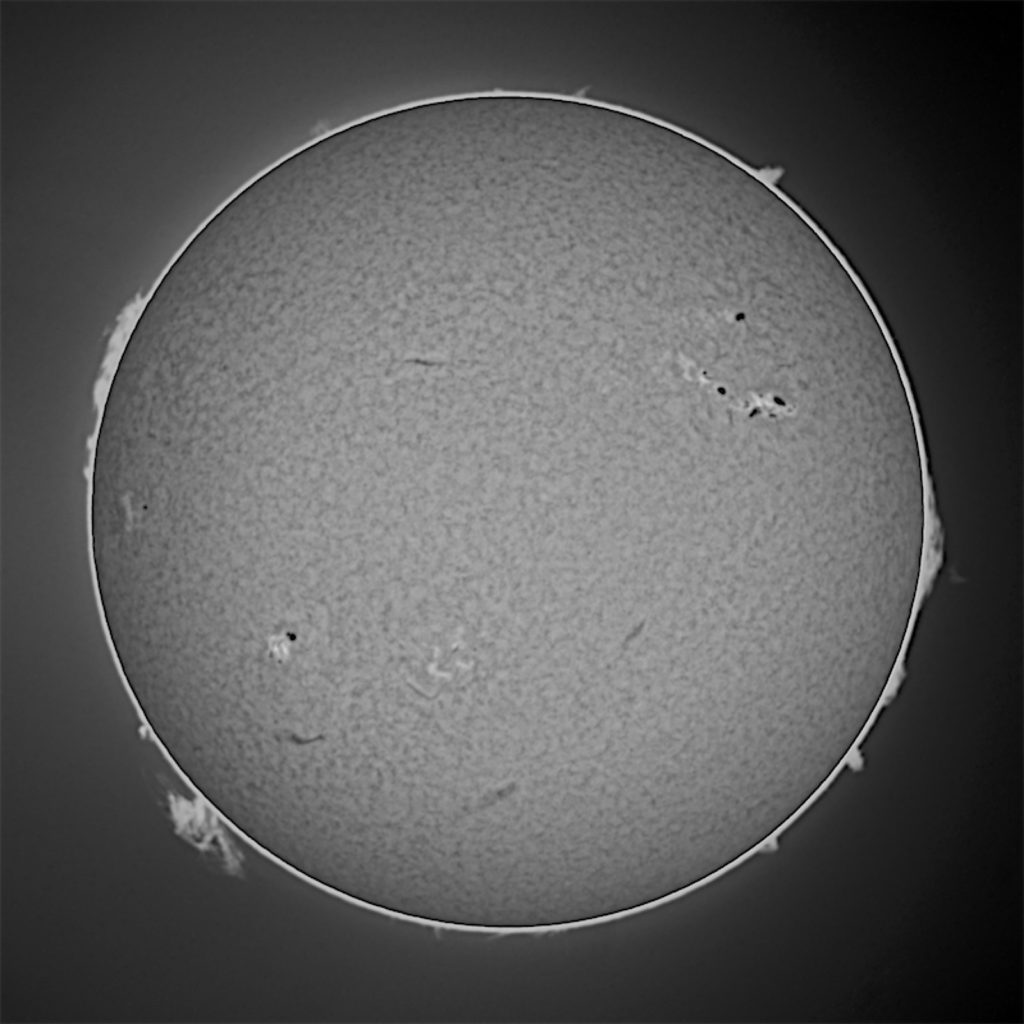 黒点番号を追記する予定でしたが、中央の黒点は見えず、右上はどれがそうか分からないので今回は止めています