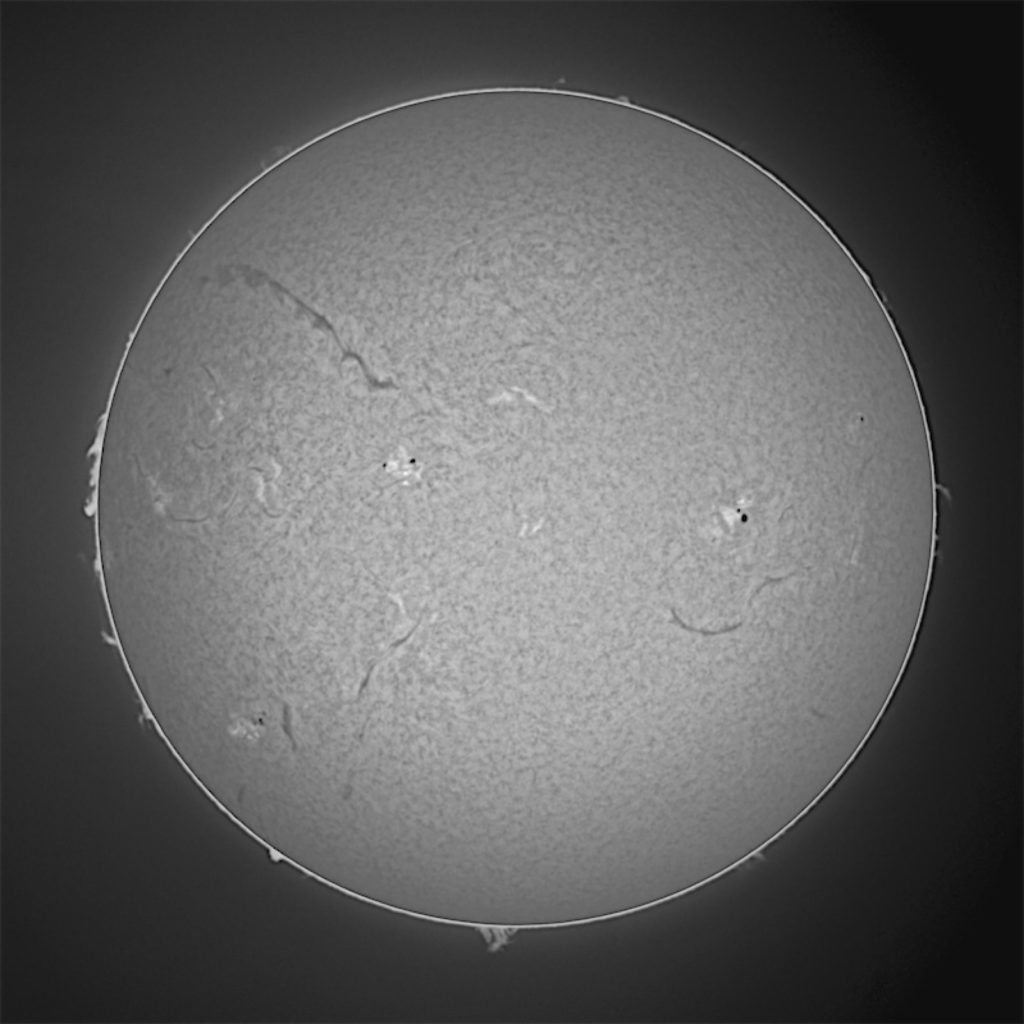 昨日と大きな差はありませんが小さな黒点が増え、フィラメントも大きく目立っています