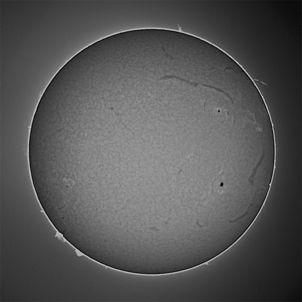 撮影中はあまり気になりませんでしたが、こうして見るとフィラメントや黒点が右半面にまとまって寂しい状況になってきました