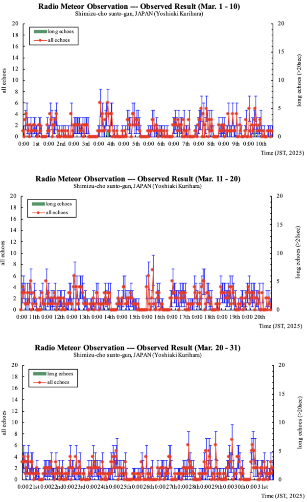 3月は特筆すべき流星群もなく、感応の問題もあるのかずっとイマイチの状況で終了しました