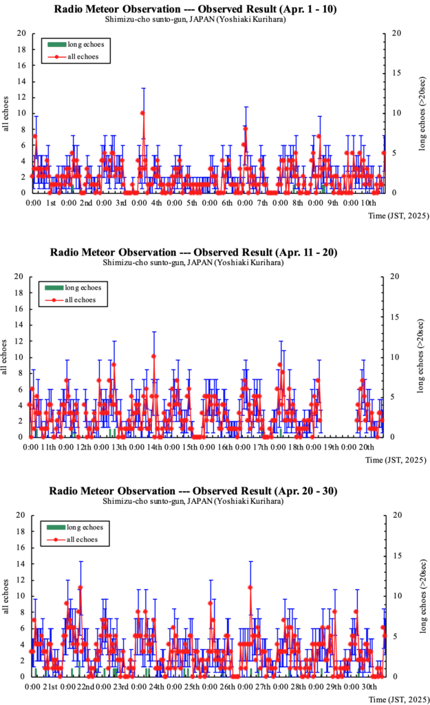 MacをHDの小さなものに入れ替えたらバックアップ時間がかなり短縮でき、時間に余裕ができたので4月の流星電波観測をまとめました