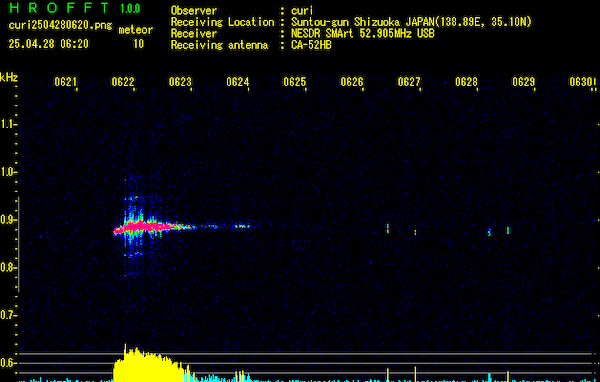 HPでは秋田の方が信号が強い様ですが、この辺りも結構長いエコーだったので実際にはどこの流星だったのでしょうか?