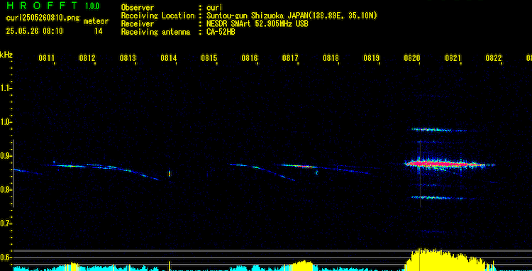 静岡上空の書き込みもありましたが、関西の方が早く長時間受信されているので、もっと西側の流星ではないかと個人的には思っています