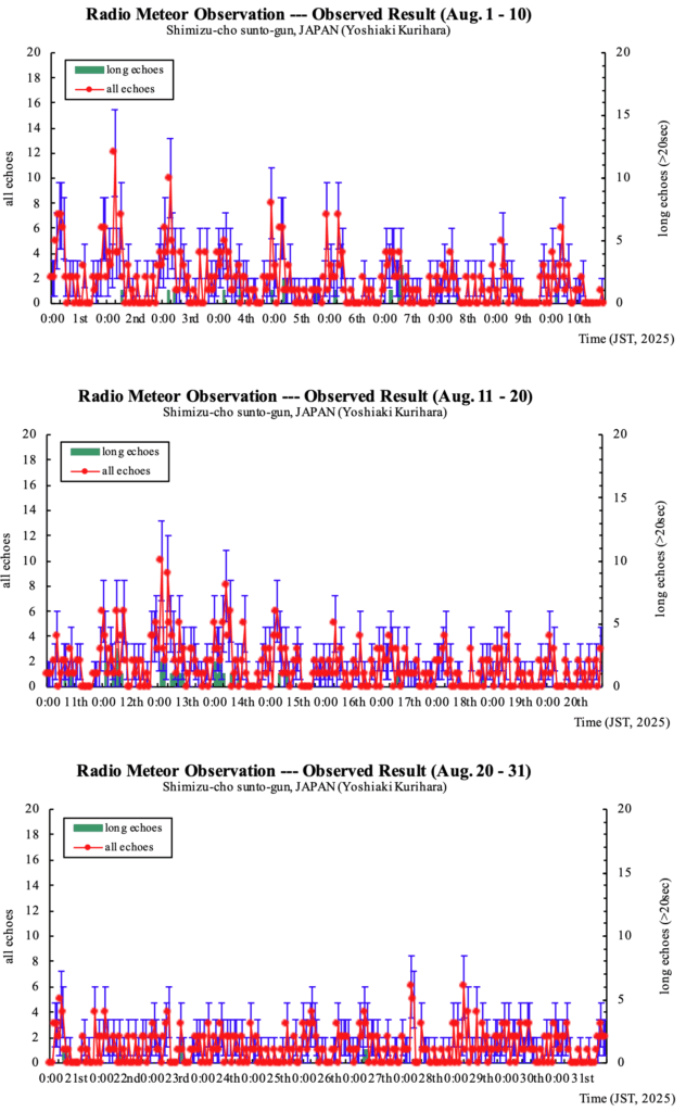8月上旬は7月末からのみずがめ座δ流星群の影響でエコー数が伸びています