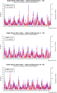 7月もだいぶ過ぎてしまったが、6月の流星電波観測結果をUPしてなかったので、載せます 3日頃より流星受信が増加傾向となり、5日にピークとなっています若干ズレていますがおひつじ座昼間流星群のピークが8日なので、この影響と思 […]